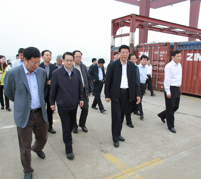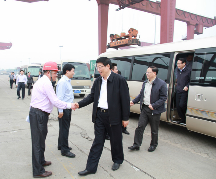 5月3日下午,湖南省委書記徐守盛,省委常委、省委秘書長易煉紅,及省信訪局、省發改委、省經信委、省民政廳、省公安廳、省政府辦公廳等領導一行,在長沙市委副書記、市長張劍飛,市委副書記張迎龍,市委常委、市委秘書長李軍,開福區區委書記李蔚,區委副書記、區長廖建華,金霞開發區黨工委書記張毅,黨工委副書記、管委會主任袁政國等領導的陪同下來長沙新港考察調研。湖南長沙新港有限責任公司董事長、總經理唐忠良,董事、財務總監趙赤書,董事、副總經理張韜,董事、長沙集星集裝箱碼頭有限公司副總經理辛華等公司領導接待。