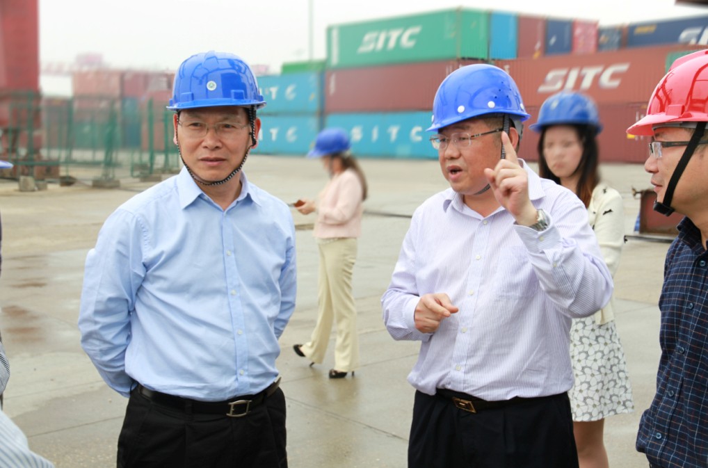 5月16日,省長助理袁建堯一行在湖南省水運管理局黨委書記、局長錢俊君,總工程師許足懷,辦公室主任張小剛,長沙市地方海事局黨委委員、工會主席胡曉東等陪同下來長沙新港調(diào)研。湖南長沙新港有限責任公司董事長、總經(jīng)理唐忠良,董事、長沙集星集裝箱碼頭有限公司副總經(jīng)理辛華,總經(jīng)理助理周勇接待。 袁建堯一行首先來到集裝箱碼頭,辛華向領導介紹,目前,長沙新港共有8個千噸級泊位,三期工程建成后,將新建6個2000噸級碼頭泊位,兼顧3000噸級船舶靠泊。屆時,長沙新港年吞吐能力將達到1000萬噸。