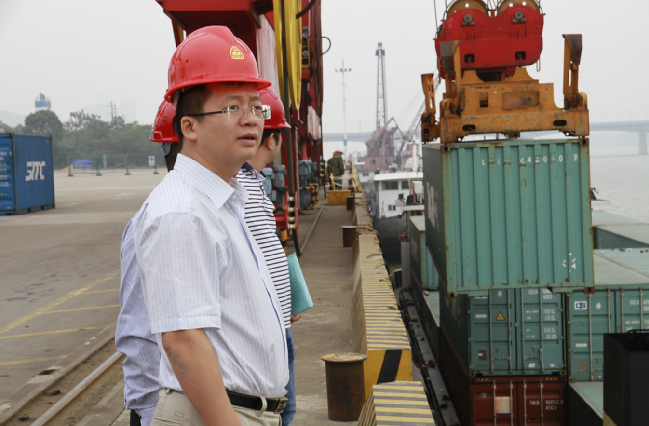 會前,調(diào)研領(lǐng)導(dǎo)對長沙港集裝箱碼頭及件雜散貨碼頭進行了實地考察。