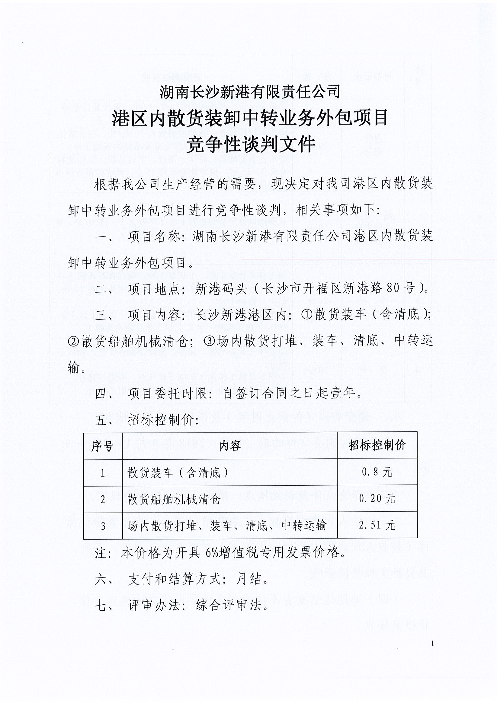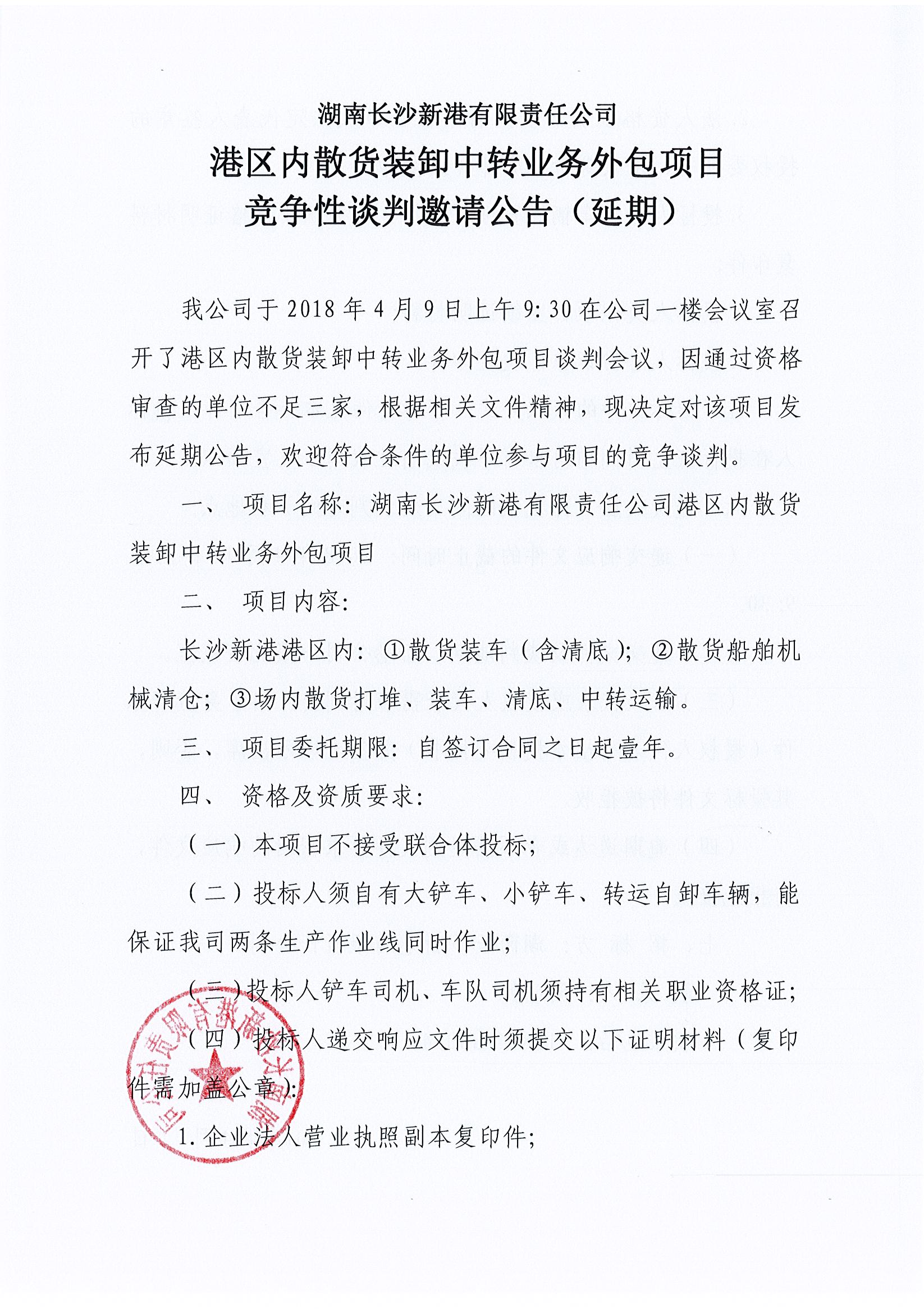 港區內散貨裝卸中轉業務外包項目競爭性談判邀請公告(延期)
