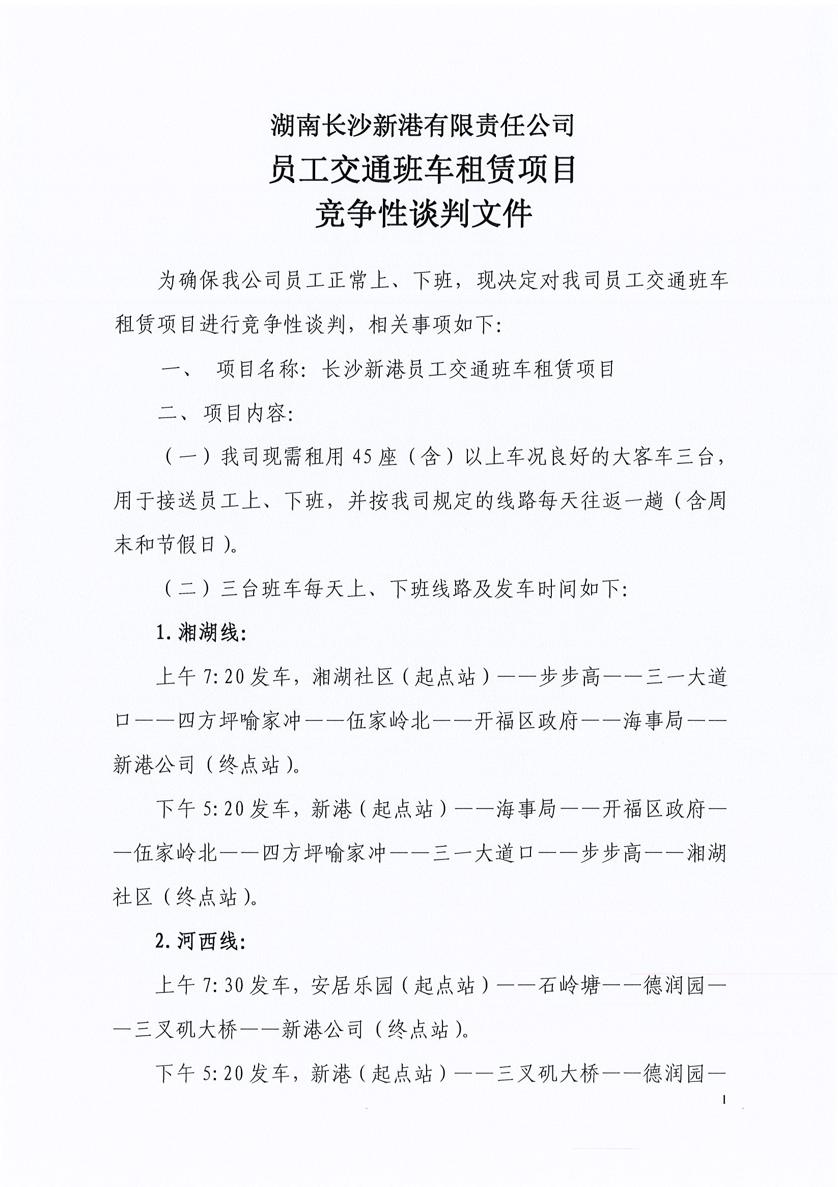 湖南長沙新港有限責任公司 員工交通班車租賃項目競爭性談判邀請公告
