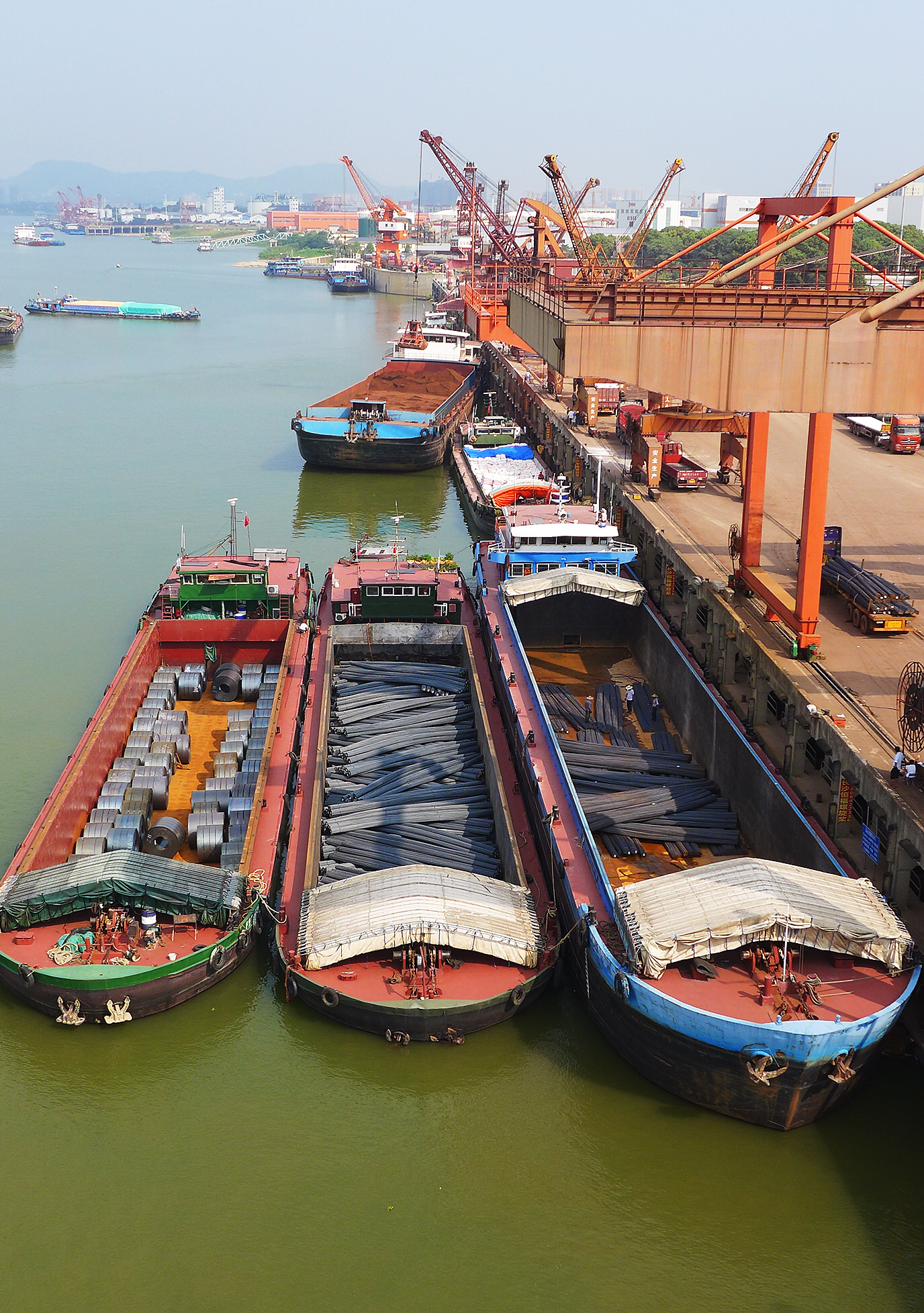 9月5日,長沙新港碼頭貨物裝卸呈現一派繁忙景象。借助“一帶一路”倡議和長江經濟帶國家戰略。
