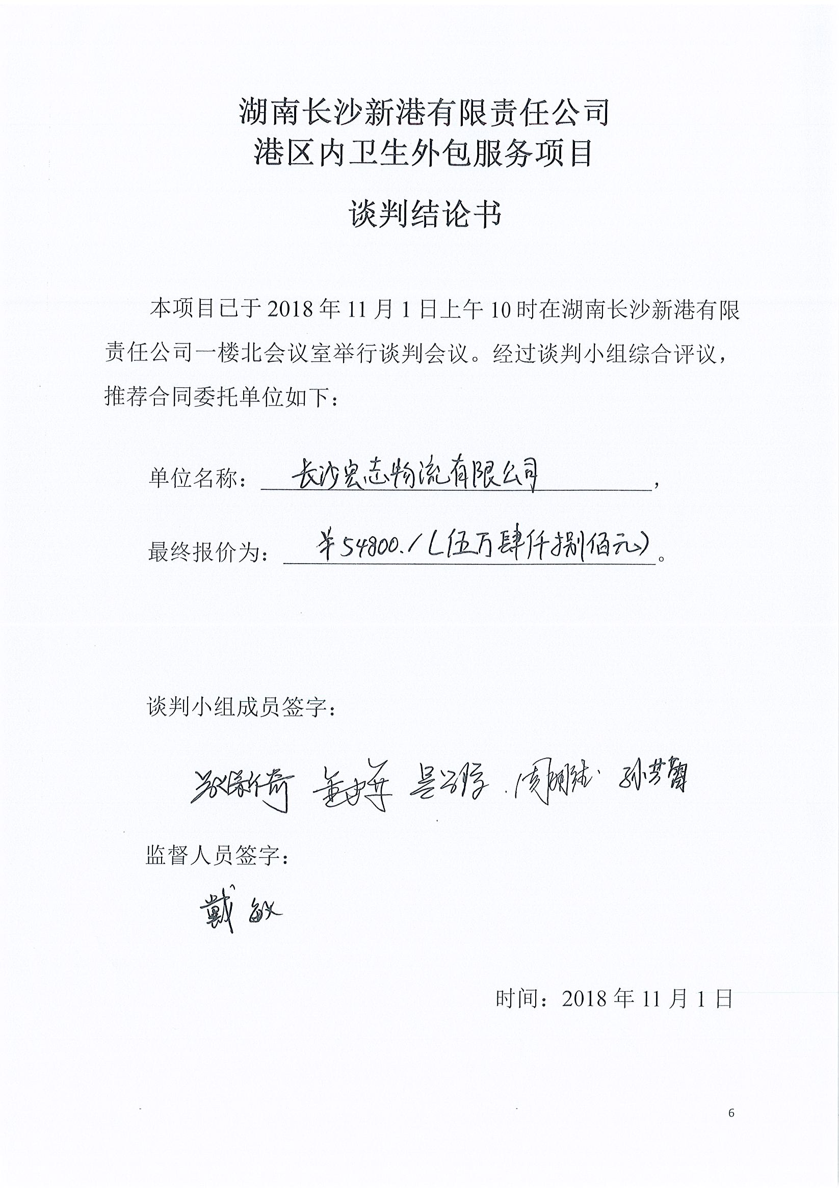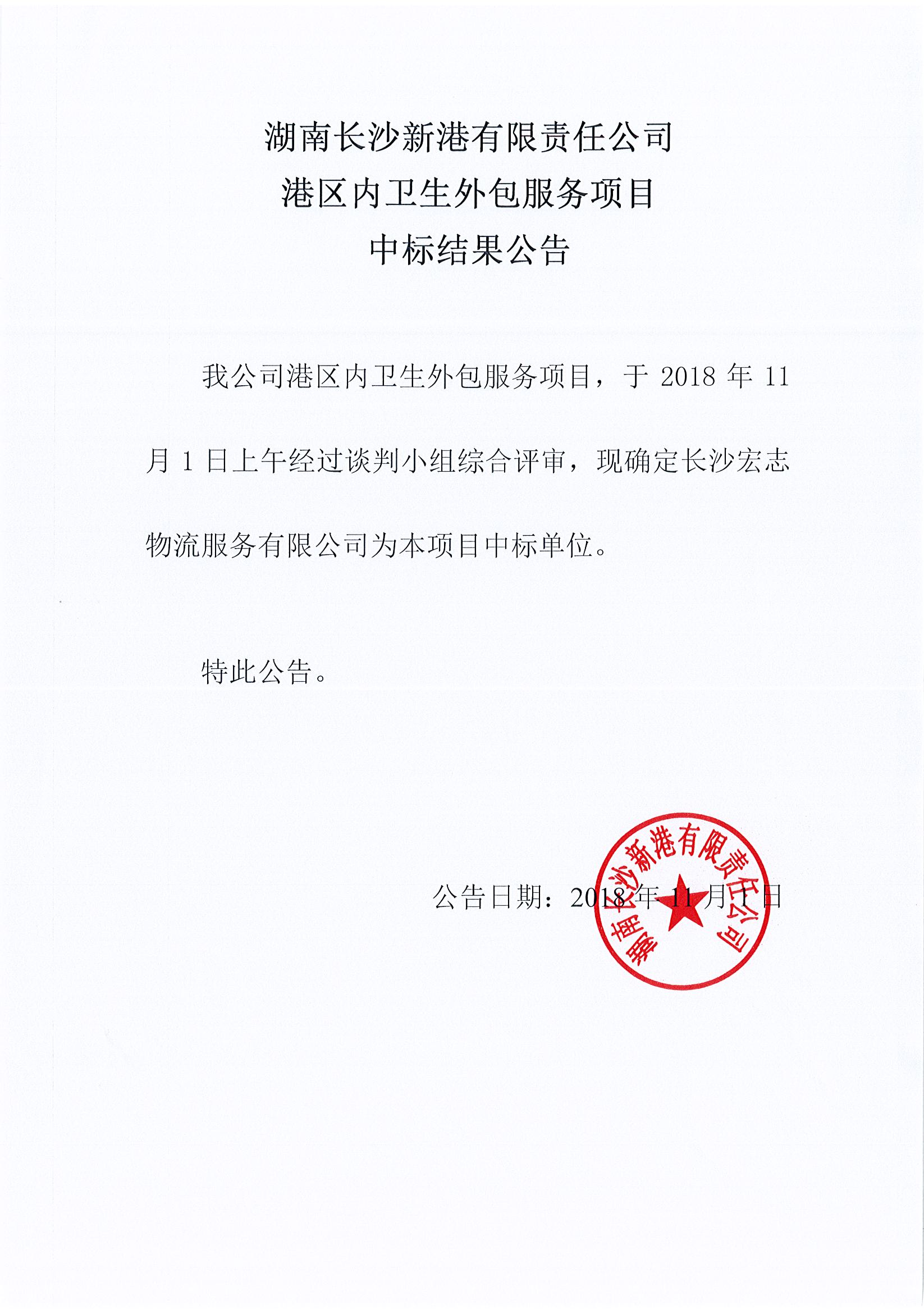 湖南長沙新港有限責任公司港區內衛生外包服務項目中標結果公示