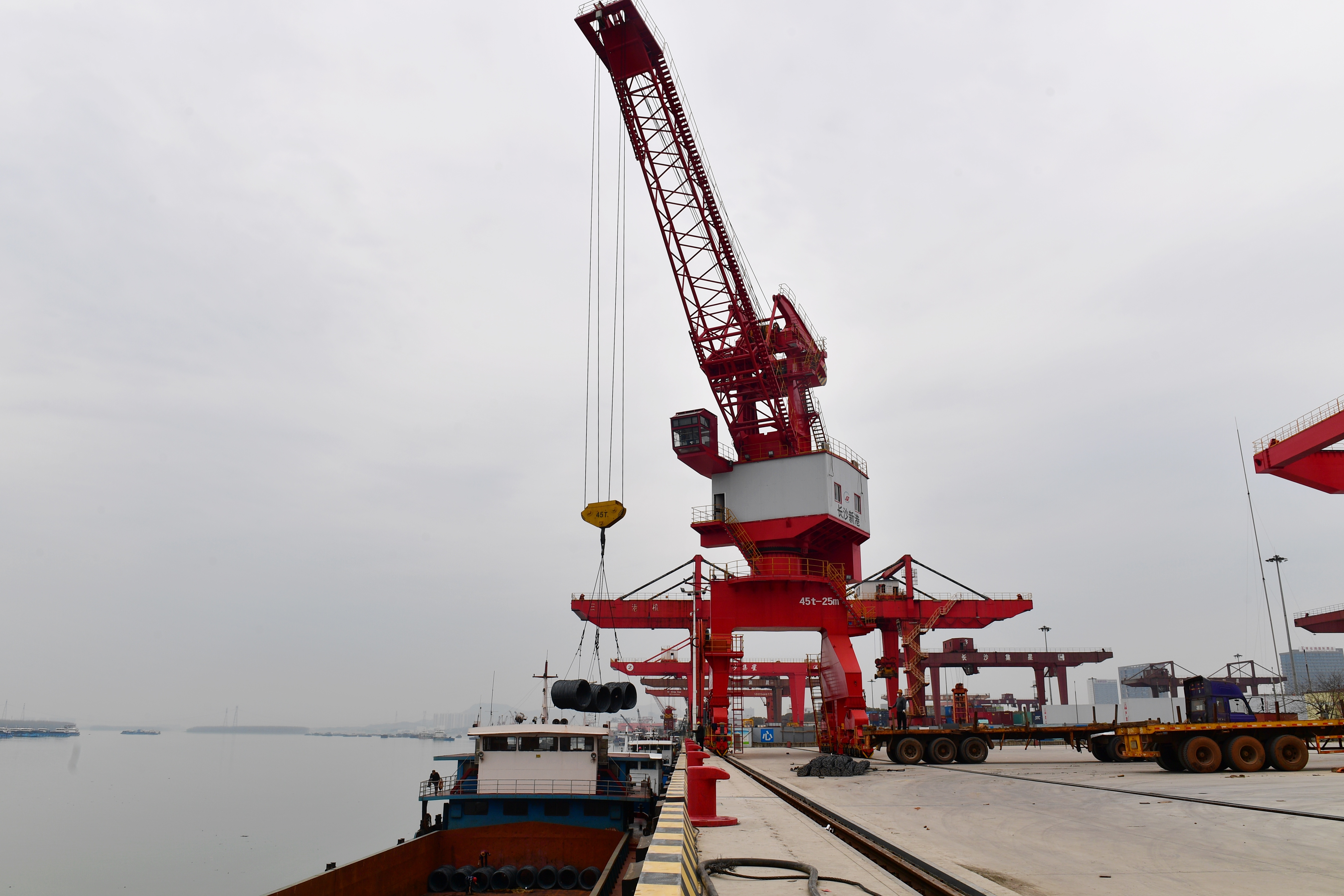 長臂空中舞,港口裝卸忙  長沙晚報2月25日訊(全媒體記者 吳鑫礬 通訊員 洪琳 孔麗) 25日,長沙新港全面復工復產,在新港碼頭上,生產作業一片繁忙。港口復產恢復了長沙水運通道的暢通,受到了滯港船舶的歡迎,港口又是一派繁榮景象。據了解,長沙新港自2月6日起實現部分生產作業以來,及時組織對集裝箱、鋼材、礦石、原材料等重點物資裝卸。目前,長沙新港碼頭件雜散貨及鋼材堆存爆滿,其中鋼材庫存量創建港以來歷史新高。 沿湘江北路一路向北,記者來到長沙新港碼頭。港區內,工作人員正對吊車、碼頭框架樓梯等區域進行噴灑消毒;碼頭邊,碼頭門座式起重機揮舞長臂,裝卸著鋼材。 長沙新港相關負責人介紹,受疫情影響,春節期間港口及附近錨地停泊了70余艘船舶,將近15萬余噸貨物待卸。從2月6日開始,新港公司在確保疫情防控安全和生產安全的前提下,實現了碼頭部分生產作業,及時組織對集裝箱、鋼材、礦石、原材料等重點物資裝卸。目前,已吞吐貨物31萬噸,其中集裝箱2358標箱,件雜散貨26萬噸。 作為集裝箱船舶進出湖南的重要門戶,長沙新港集星公司積極與船務公司聯系,確保集裝箱運輸暢通。 “原本以為這次疫情會影響生產,沒想到碼頭安排得如此井井有條,保證了我們的正常運轉,為港口點贊。”原來,從2月21日至24日四天時間里,長沙新港集星公司完成了華光船公司和穿巴船公司共11個航次的裝卸作業,共計完成箱量944標箱,讓裝有鎂粉、輪胎、建材、機械設備等貨物的集裝箱得以順利抵達目的地。 已按客戶要求發運966臺汽車 記者在長沙新港滾裝碼頭看到,作為湖南首個汽車滾裝碼頭,長沙新港滾裝碼頭的復工復產給上海大眾、長安福特、長安等品牌汽車及時提供了物流支撐。復產至今,長沙新港滾裝碼頭已按客戶要求發運966臺汽車。 長沙新港只是長沙在疫情防控期間保證物流正常運轉的一個典型。記者從長沙市交通運輸局獲悉,在疫情防控期間,長沙各物流園區和企業全力做好交通運輸保障,為疫情防控和企業復工作出了貢獻。 自2月10日開業以來,紅星冷鏈物流園區全力做好長沙市民日常生活保障,為長沙城區各主要市場配送家庭消費食材,日均配送長沙城區配送點發運100臺次,日均吞吐量達2000噸。同時,還向省內各地州市及周邊省市做好物流運輸工作,日均支線運輸車輛發運150臺次,覆蓋全省(除長沙城區外)114個區縣及江西萍鄉、南昌等地。 湖南物流總部承運物資包括醫用器材、防護物資、民生食品及日用品等,其覆蓋湖南省內、長沙市內各地區,配送服務點達30多個,其中面包、方便面、食用油、米等食品日均量為18600件,衛生紙、清洗液等日用品日均量為13500件。 從1月24日至2月19日,中國石油運輸有限公司湖南分公司為湖南所屬14個地州市累計配送油品5.6萬噸,2005趟次,其中為長沙市中石油85座加油站累計配送油品8525噸,有力保障油品穩定供應。 |