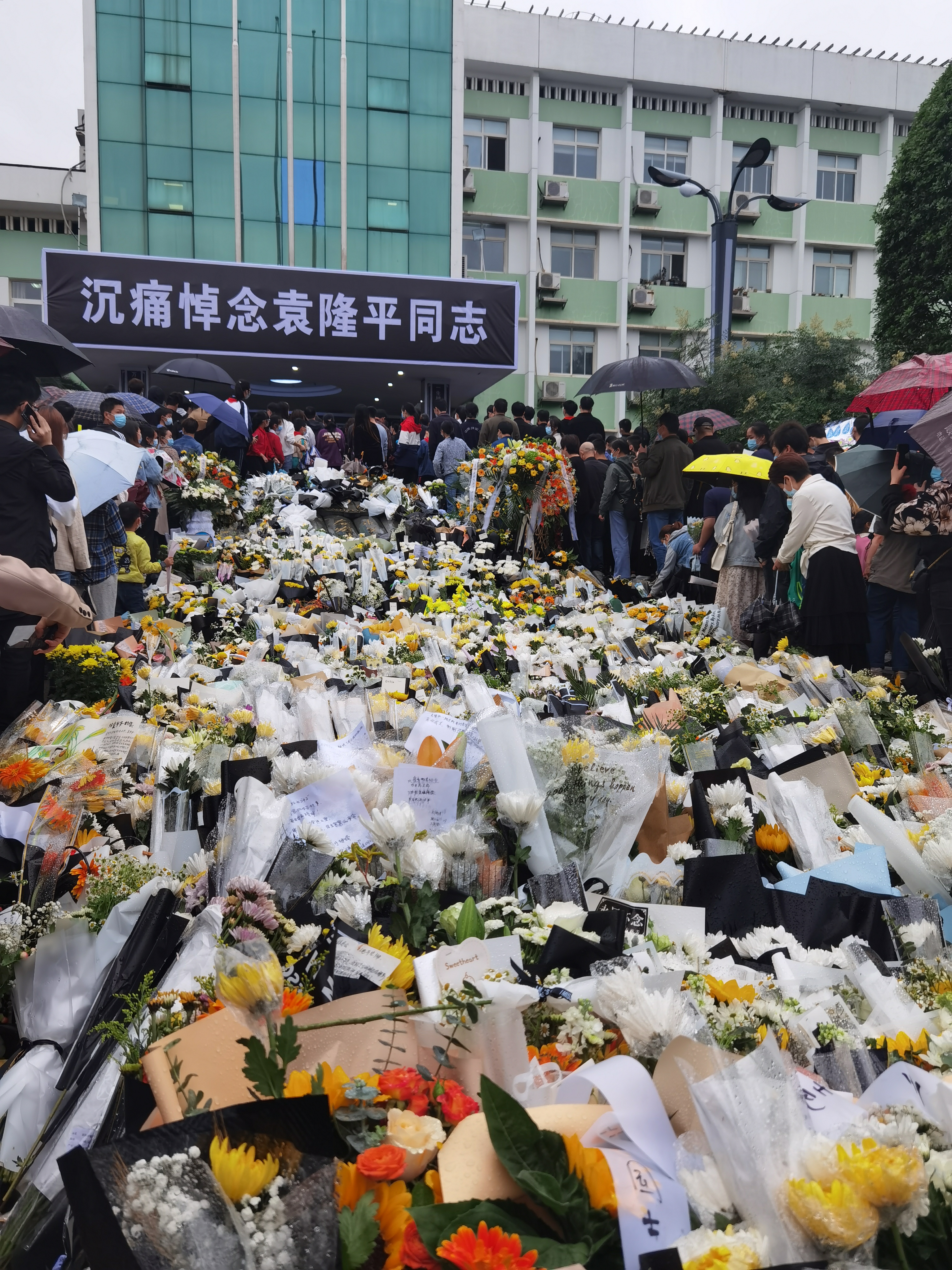 一位滿頭銀發的老奶奶,慢慢走到袁老遺像前深深鞠上一躬;一位年輕的母親,帶著自己幾歲的孩子祭拜,為袁爺爺送上最后一程;還有人給袁老的照片撐傘,“不能讓爺爺淋著了。”此情此景,可謂自有蒼生以來鮮有也。