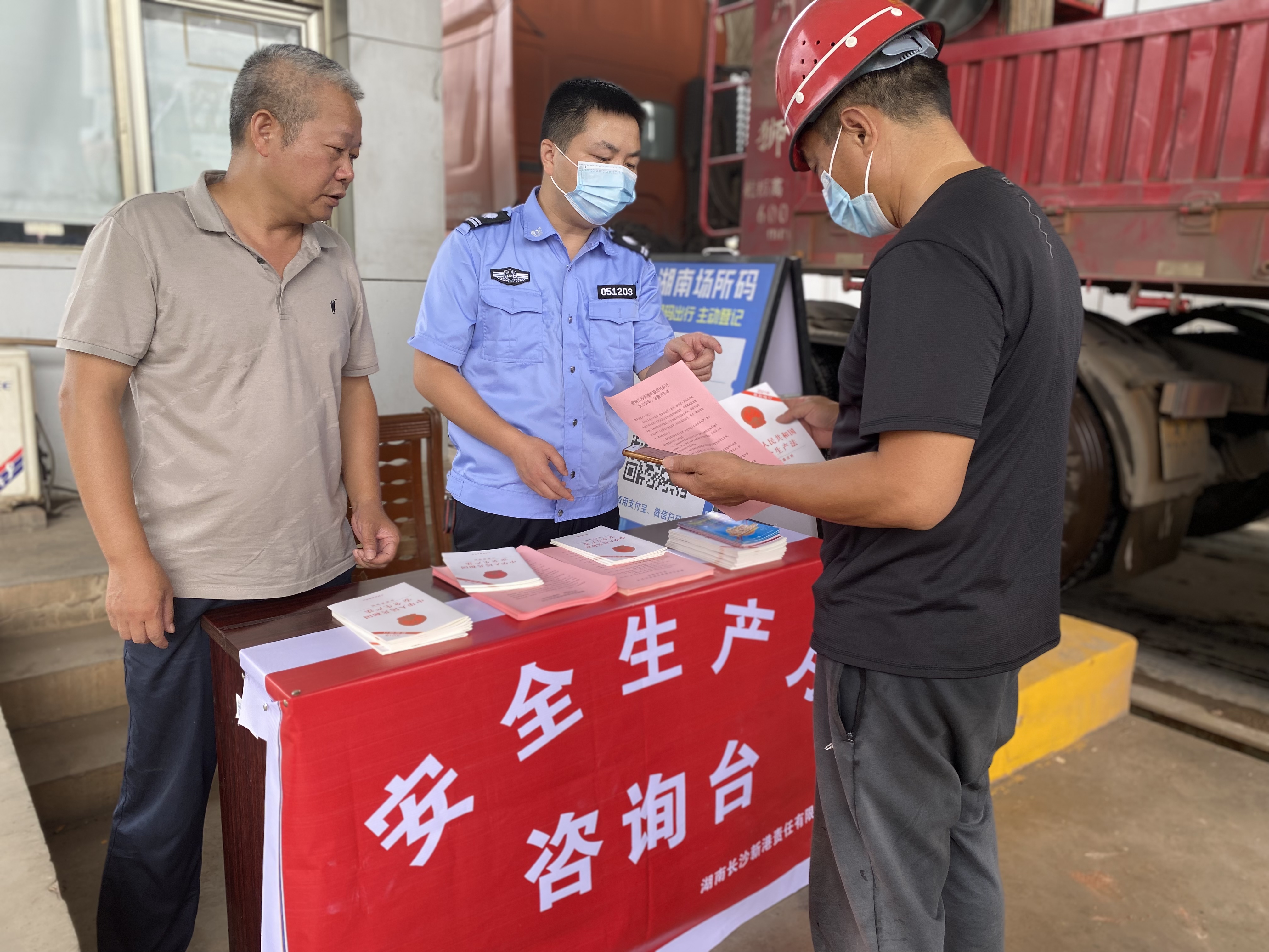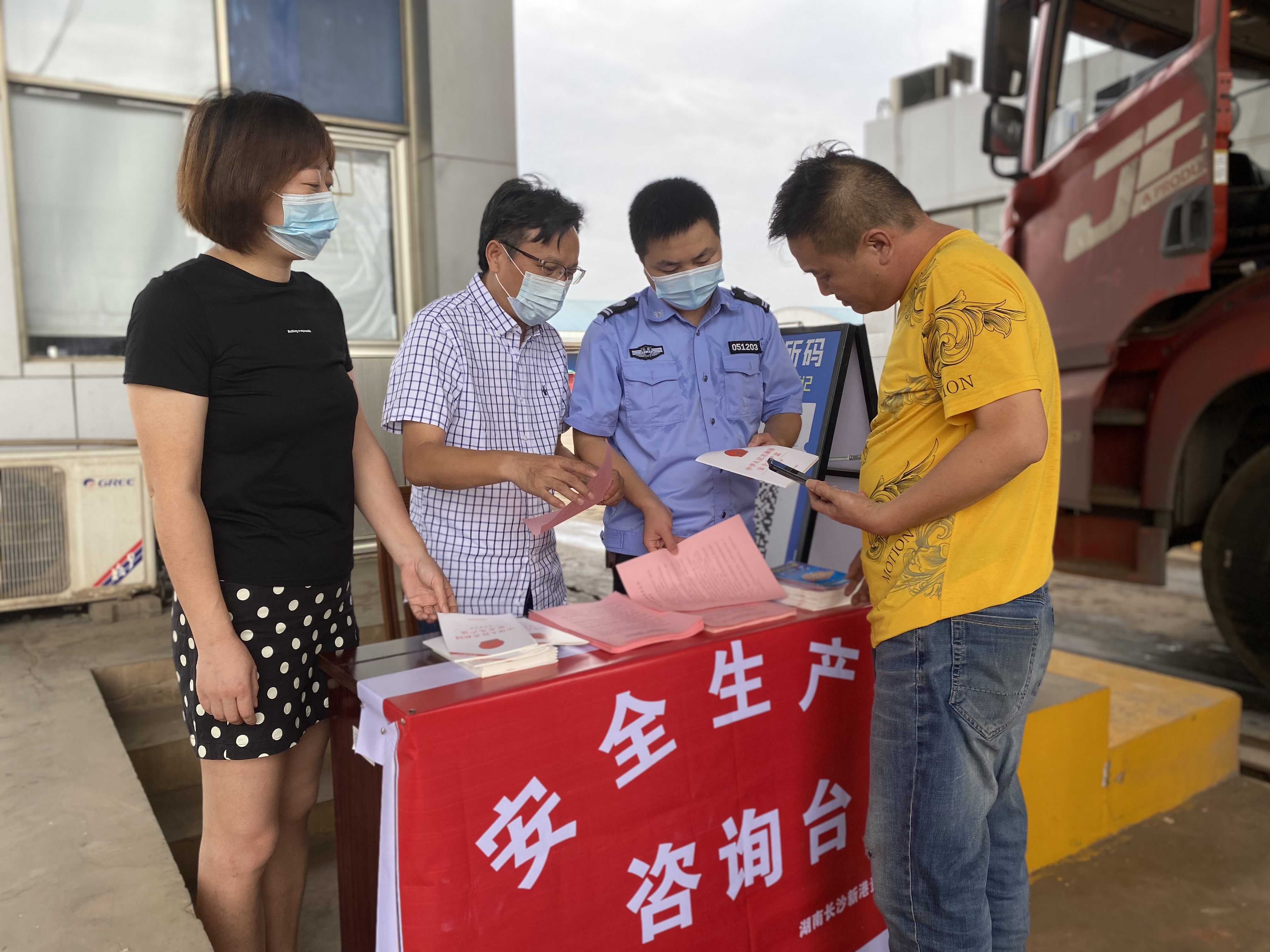 6月16日上午,湖南長沙新港有限責任公司在港區入口處開展安全生產月咨詢活動,向入港司機、客戶宣傳安全知識,發放《安全生產法》、安全知識宣傳折頁、車輛裝卸運輸安全告知書以及入港安全告知書等,營造安全氛圍。