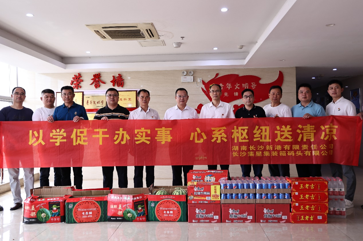 以學(xué)促干辦實(shí)事 心系樞紐送清涼 入夏以來,長沙出現(xiàn)連續(xù)性高溫天氣,8月10日,長交集團(tuán)新港公司先后來到長沙市交通運(yùn)輸綜合行政執(zhí)法局湘江樞紐執(zhí)法大隊(duì)、長沙市湘江綜合樞紐工程辦公室開展防暑降溫“送清涼”慰問活動。 慰問中,新港公司黨委副書記、總經(jīng)理辛華為湘江長沙綜合樞紐工作人員送上西瓜、綠豆、礦泉水等清涼物資,對湘江樞紐工作人員的敬業(yè)精神、高度責(zé)任感和優(yōu)質(zhì)服務(wù)表示欽佩,感謝他們不畏酷暑、堅守崗位,保障湘江長沙綜合樞紐安全暢通,有力助推長沙本地港口航運(yùn)產(chǎn)業(yè)高質(zhì)量發(fā)展,并對船閘運(yùn)行以及應(yīng)對枯水展開交流座談。