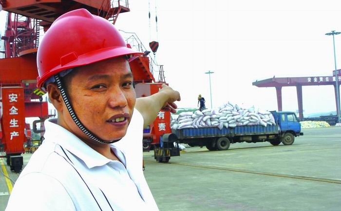 2003年7月,長沙老港整體搬遷到霞凝新港,2006年9月,長沙新港二期工程竣工投產,港區碼頭的件雜貨業務日益增多,農民勞務人員需求量增大,政府不斷規劃勞務市場。劉運交想在心里,干在眼前,迎來了新的發展契機,于2006年在工商部門注冊,組建了以港口裝卸業務為主營的“長沙市開福區運杰裝卸有限公司”,當上了法人代表,成為了52名農民勞務工的經理。公司每年能起卸50-60萬噸豆粕等包裝件雜貨物,為長沙新港創毛收入近200萬元,上繳稅金6萬多元,自己的年收入近10萬元,勞務人員旺季月收入可達3000-3500元,最低時也可拿到1700—1800元。他還為每位農民工買了“工傷”等保險金。隨著收入增多,劉運交的生活水平有了明顯改善。2008年,他在附近的新安寺小區買了一套60平方米的新房,家里電器設備俱全。日子越過越好,國慶期間他還想買輛小車,便于開展生產業務。