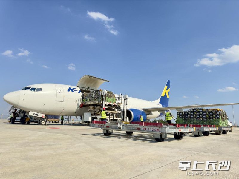 8月8日下午,一架滿載20噸進口水果的波音737全貨機平穩降落在長沙黃花國際機場。 長沙晚報通訊員 崔俊 供圖
