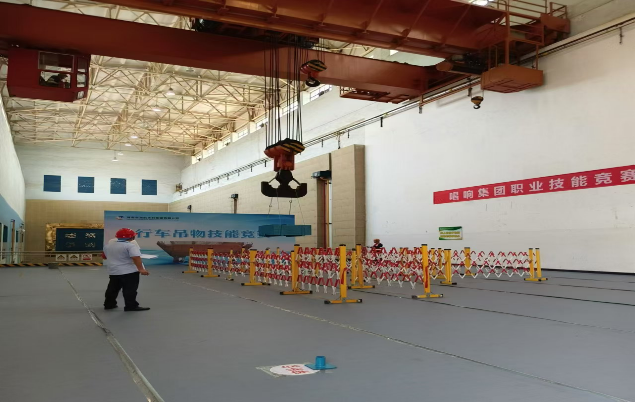 此次競賽中,湯良榮、彭嘯展現出非凡的實力。為確保參賽人員在具備實踐操作能力的同時,還具備過硬的專業理論知識,各參賽隊員先進行理論考試。實操比賽使用指定的吊機和木箱,在箱子上放3杯水,將吊起的箱子在不觸碰障礙物的前提下從指定路線移動至終點,并完成“穿針”任務的同時還要確保水不溢出。此操作不僅對作業精準度和完成速度有很高的要求,對起重指揮員指令精準度、行車司機操作技術和雙方的默契配合也是很大的考驗。