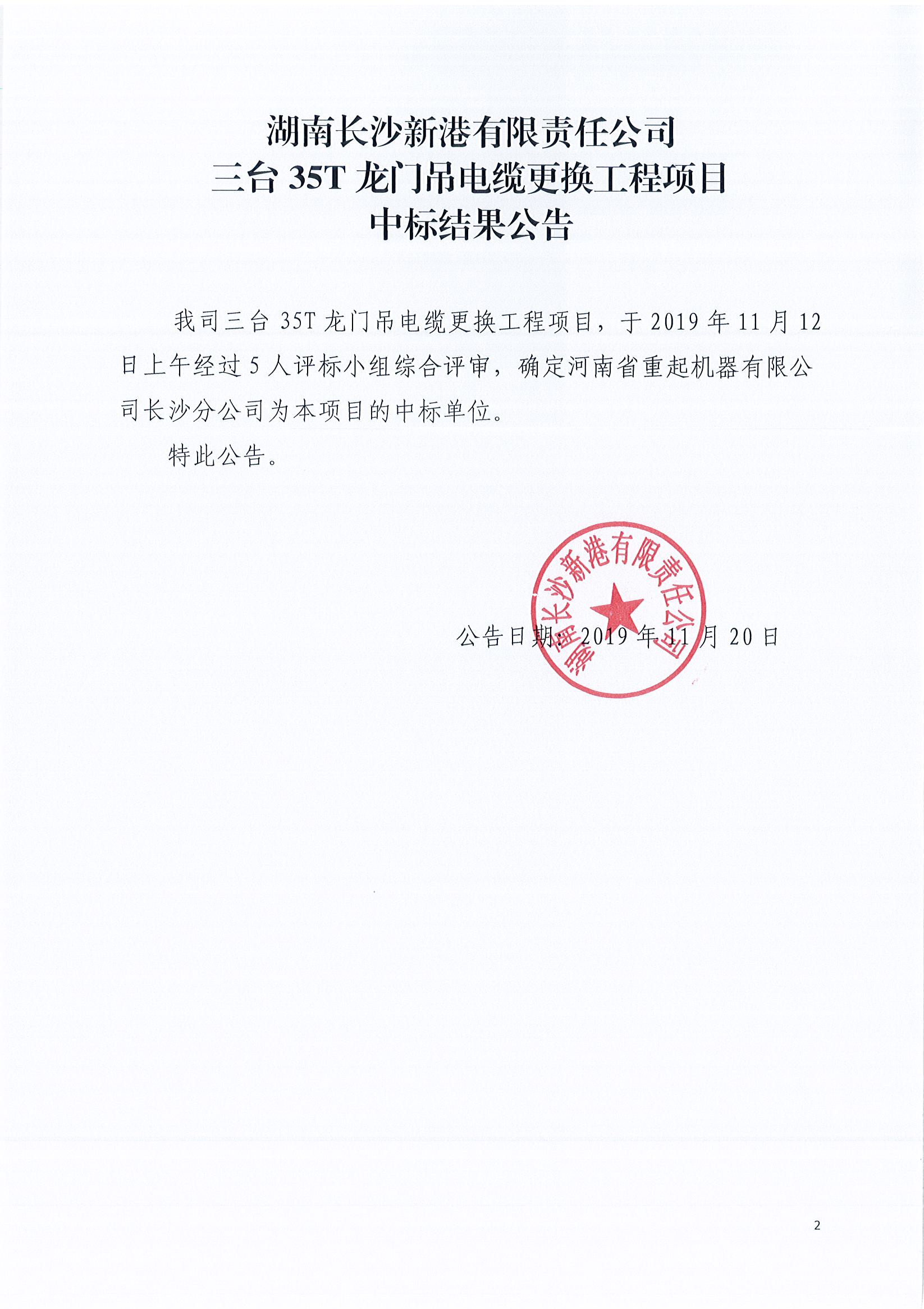 三臺35T龍門吊電纜更換工程項目中標結果公告