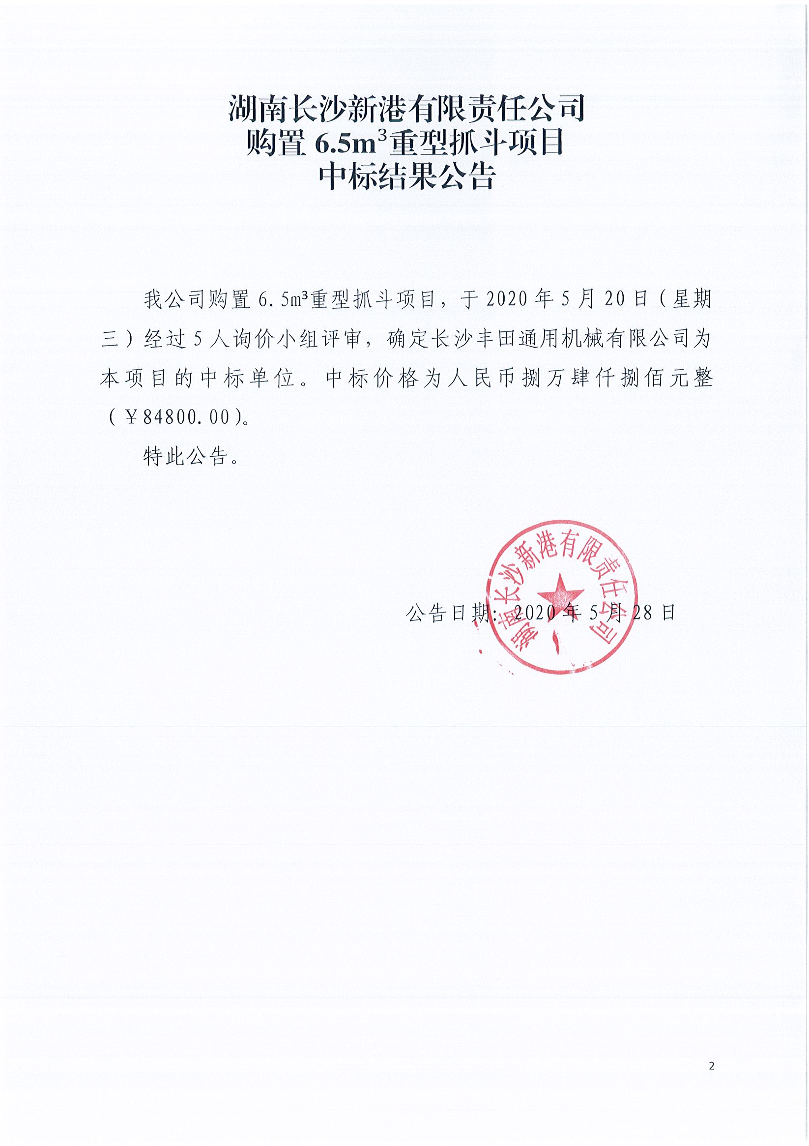 購置6.5m³重型抓斗項目《中標結(jié)果公告》
