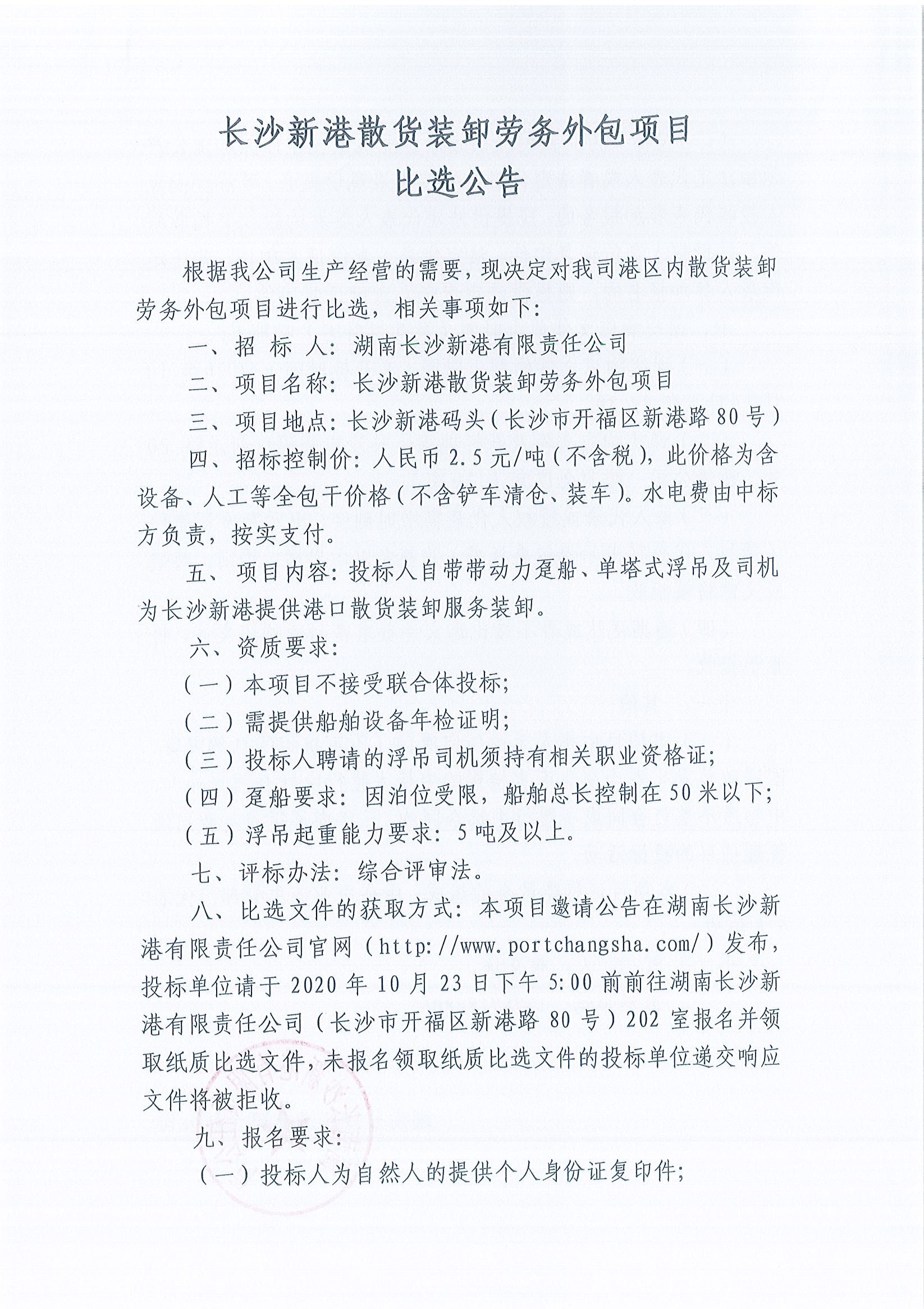長沙新港散貨裝卸勞務(wù)外包項(xiàng)目比選公告