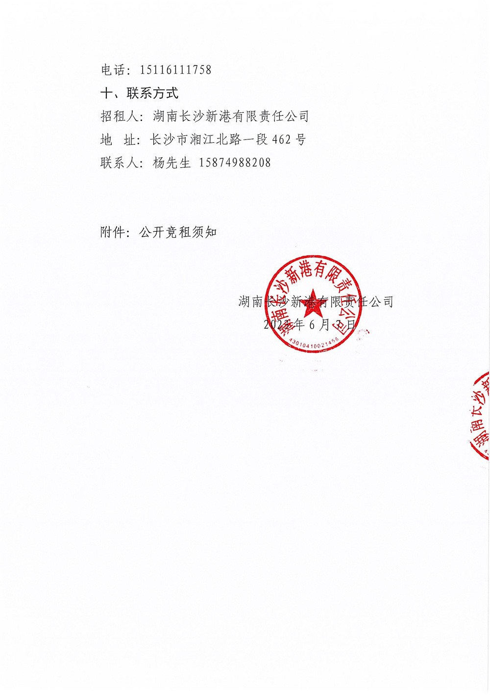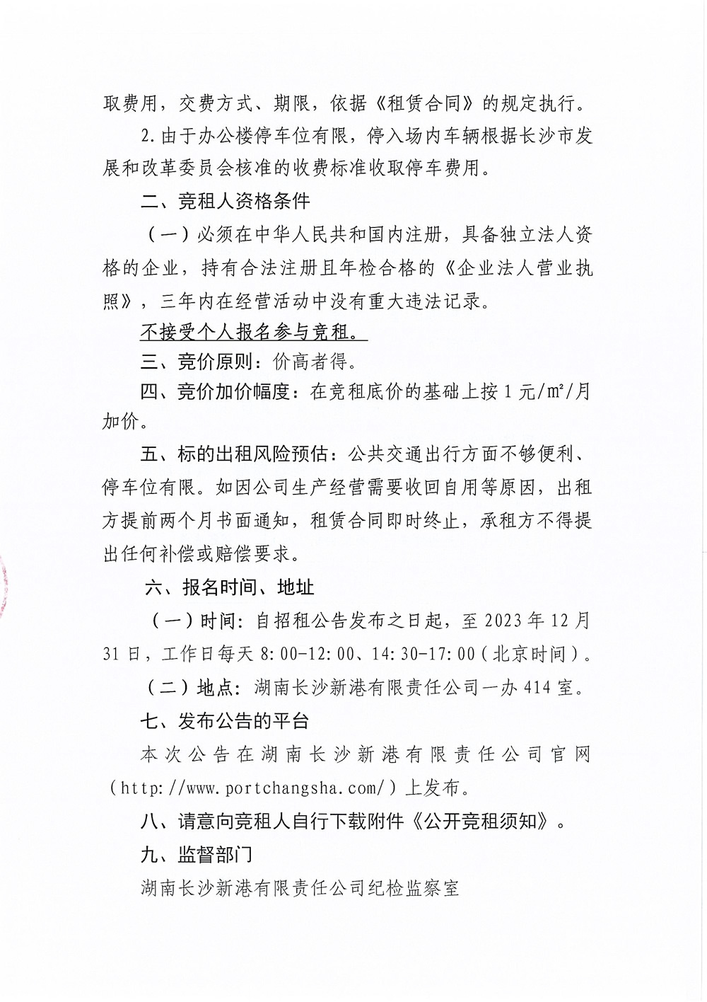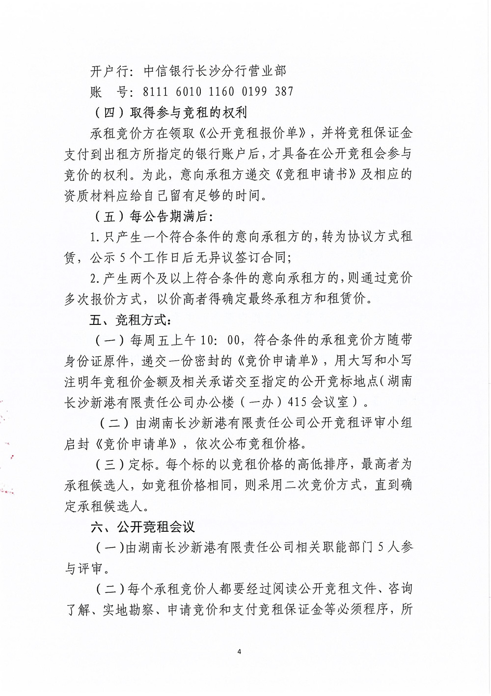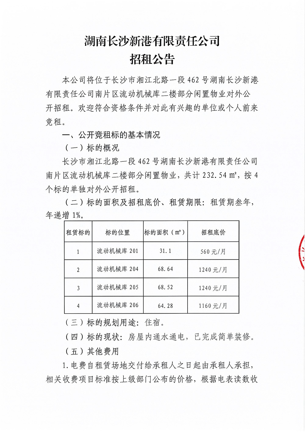 湖南長沙新港有限責任公司招租公告