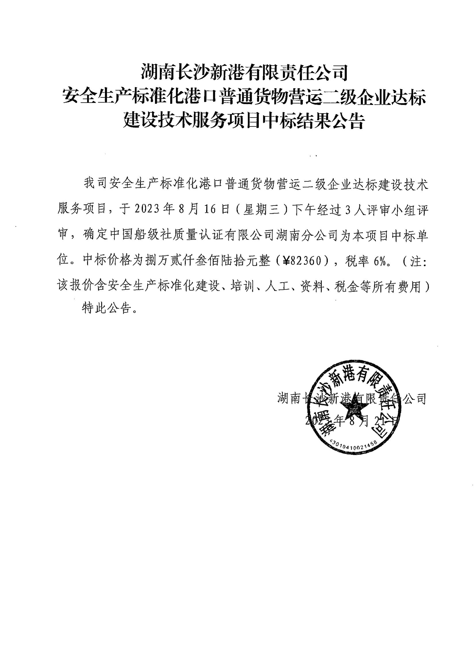 安全生產(chǎn)標(biāo)準(zhǔn)化港口普通貨物營運(yùn)二級企業(yè)達(dá)標(biāo)建設(shè)技術(shù)服務(wù)項(xiàng)目中標(biāo)結(jié)果公告