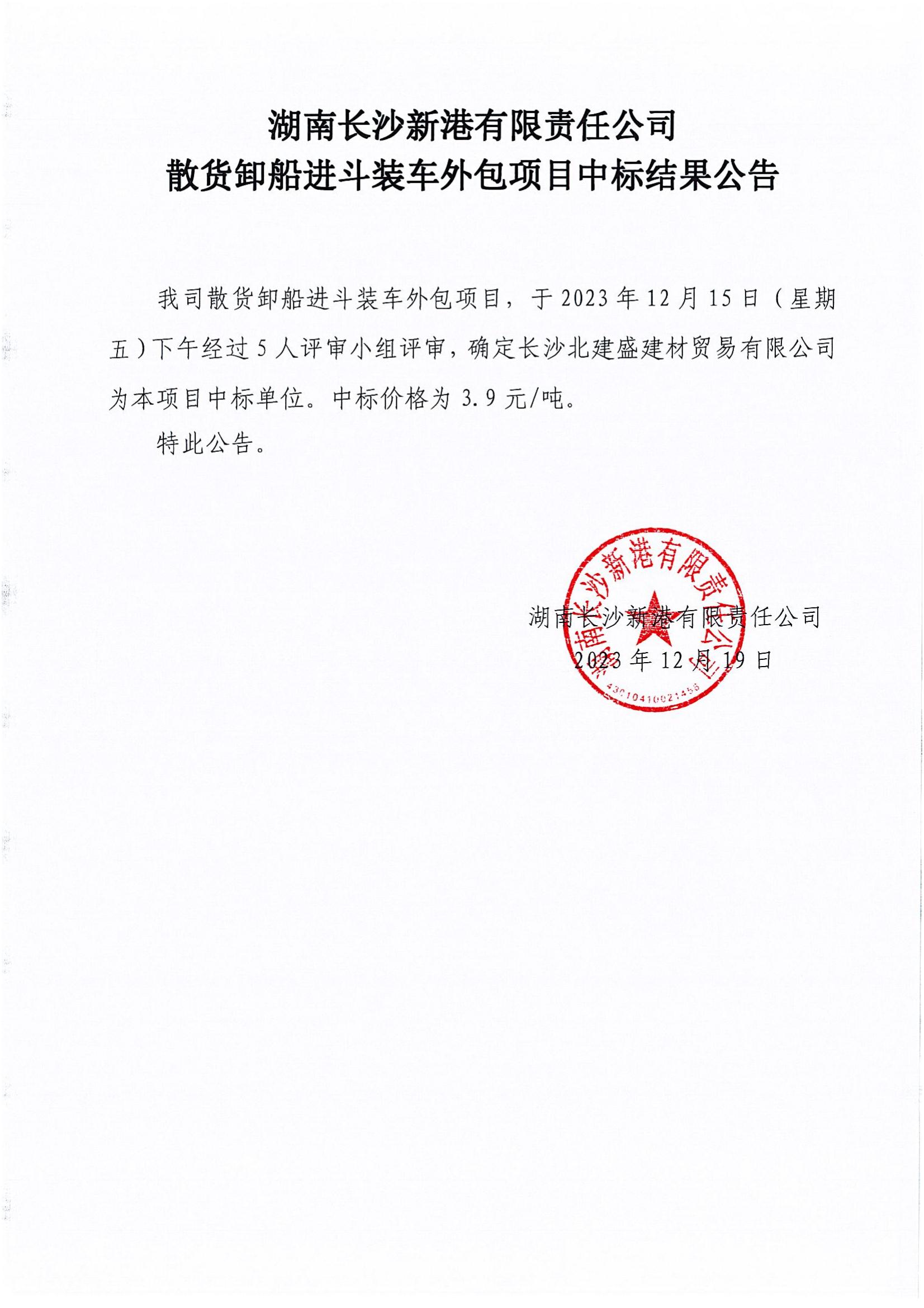 長沙新港散貨卸船進斗裝車外包項目中標結果公示